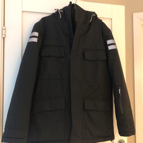 Brukt i en kort periode i russetiden, helt ren og ingen bruksmerker. Den har hette, mange praktiske lommer og refleks. Den er stor i størrelsen og varm og god.
