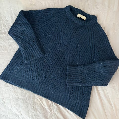 Genseren er 59cm lang målt fra nakken og ned. Mål under arme og tvers over 59 cm og arm 43 cm lang.