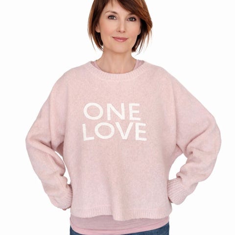 Line of Oslo genser i ull, farge rosa, størrelse M. Genseren er laget i ullblanding.