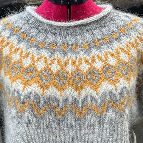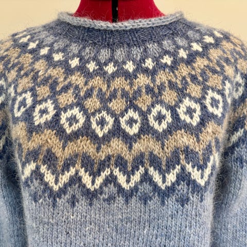 Str L. Brukt to ganger . Strikket i lettlopi. Sender gjerne , med vanlig post