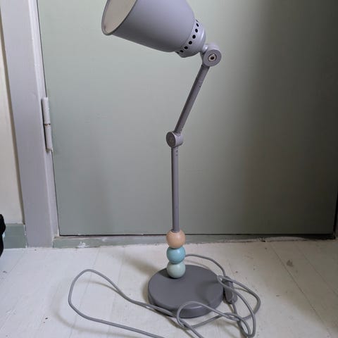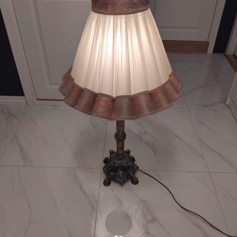 Selger lampe, lyspære følger med om ønskelig. Total høyde på lampen er ca. 60cm med lampeskjermen.