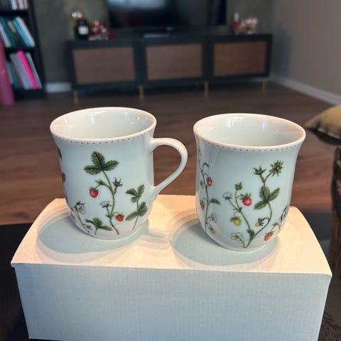2 stk Porsgrund Porselen – Jordbæreng Krus