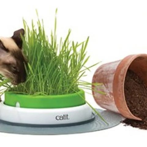 Håndlaget kattehule laget av filt med et dekorativt mønster av tre og fargede prikker. Egnet som et koselig og beskyttet sted for katter å hvile og leke. Designet som en rund hule med en åpning for enkel tilgang.