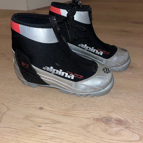 Motiv fra Frost. Dette er ski du bruker vanlige sko til. Det har vært fint for å øve hjemme, på de første turene der ungen er lei etter 10 min, eller det ofte er bytte mellom litt skigåing og pulk.