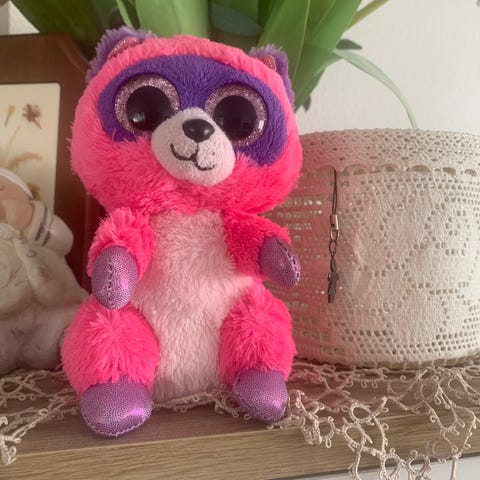 Ty myk kosedyr i flerfarget stoff. Passer som leketøy eller kosevenn for barn.
