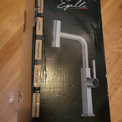 Aldri brukt, ble liggende på lager i kjeller. Det er noen små ujevnheter i krommen på kranrøret. Det er egentlig ikke noe man ser om man ikke ser direkte etter det, men man kan kjenne det om man stryker over på stedet.