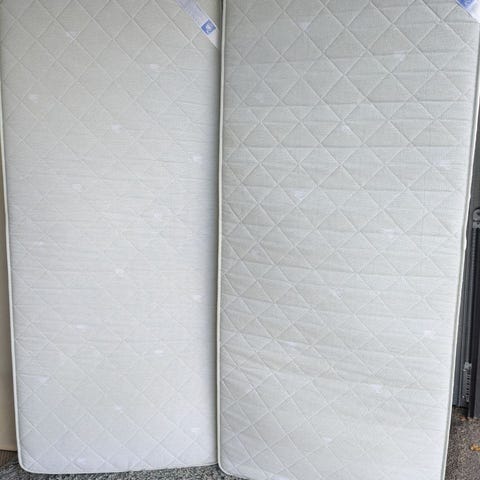 Overmadrassen har vært i brukt et par ganger på gjesterommet.