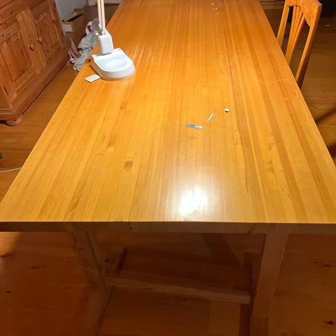 Eikebord 180cm x 90 cm. Har 1 klaff 50cm. Har ein heimelaga klaff og 100cm .