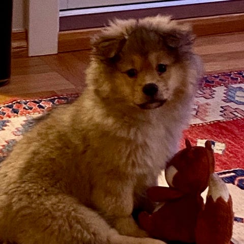 Her er Simba som straks blir 2 år i Januar. Han er en blid og aktiv hann hund. Liker å leke med lekene sine.