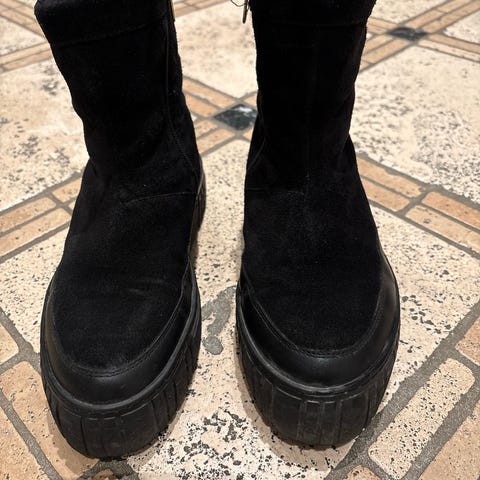 Dr. Martens vinterstøvler i størrelse 38. Støvlene har en brun farge og kombinerer skinn og tekstilmaterialer. Designet for kalde forhold med solid såle og snøring for god passform.
