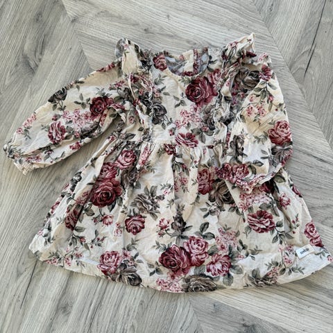 Selger 2 rosa kjoler og 1 hvit strømpebukse i størrelse 80. Pent brukt, rene og i god stand.
