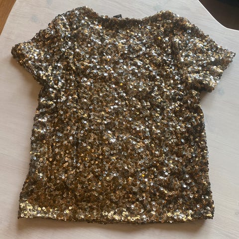 Hvit t-skjorte med vendbare paljetter.