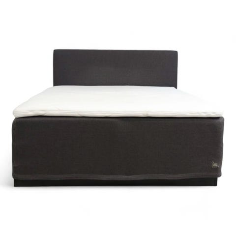 Selger en svaneseng medium fasthet og 120 cm bred. Den er brukt med overmadrass, men selges uten. Et par skrammer på hjørnene som har stått mot vegg. Se bilde. Ellers fin og hel.