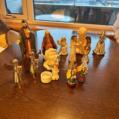Engel som våker over Maria, Josef og Jesusbarnet.