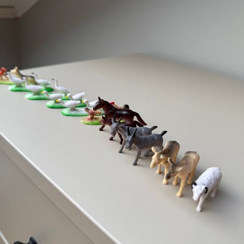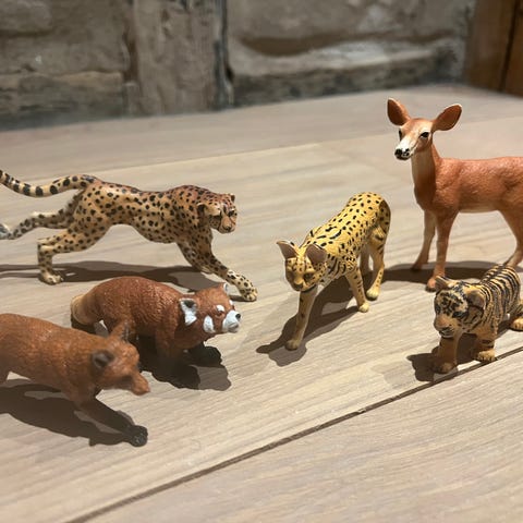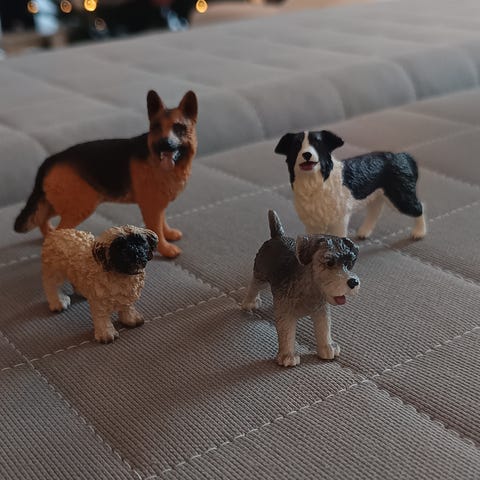 Geitekilling, hunder, katt, ryttere Schleich, 100 kr pr bilde