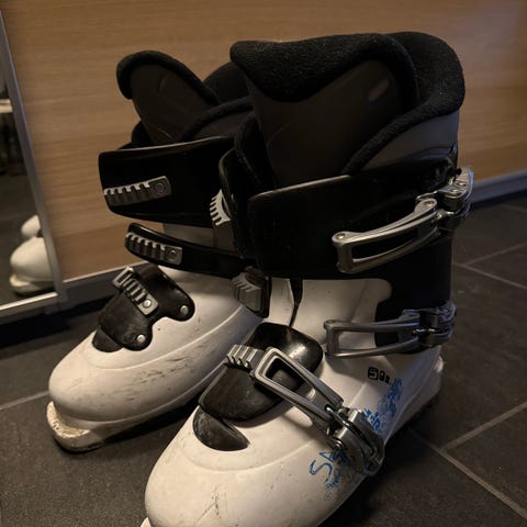 Selger et par med pent brukte alpint støvler i str 20-20,5 245 mm.