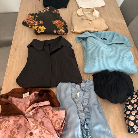 Inneholder skjorter, hettegenser og hettejakke, topp, strandkjole, gensere, cardigan, treningsoverdeler, tskjorte.