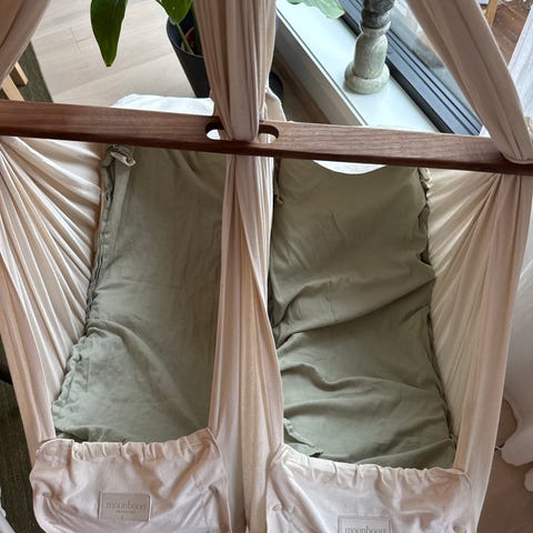 Selger med tungt hjertet dette uvurderlige verktøyet for bedre søvn for våre tvillinger. Dette har virkelig gitt oss pusterom! Vi kjøpte den brukt i juli 2025 og vi har ikke angrer er sekund!