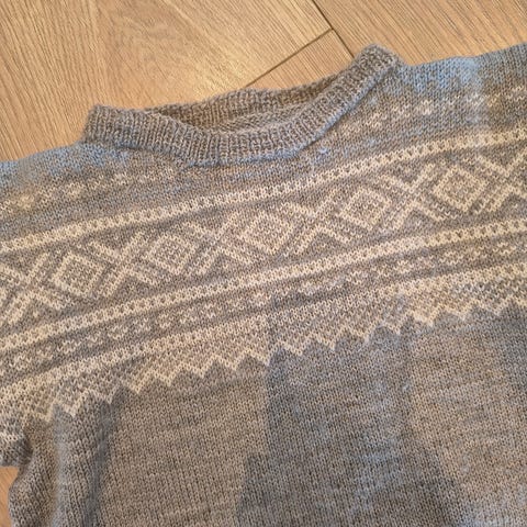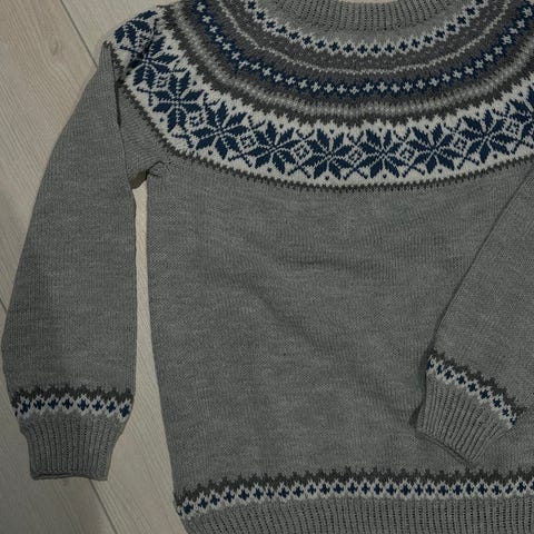 En nydelig hjemmestrikket ullgenser. Laget av en en myk garn som ikke klør. Kjøpt på et marked for 700 kr, men innser at genseren er for liten for meg. Håper noen andre får glede av denne kjempefine genseren. Se gjerne også mine andre annonser.