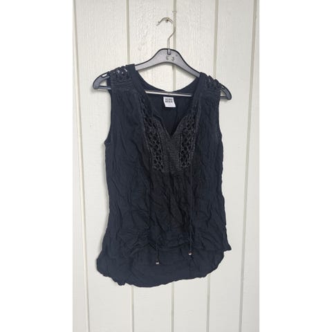 Svart brodert bluse i bomull med elastisk midje.