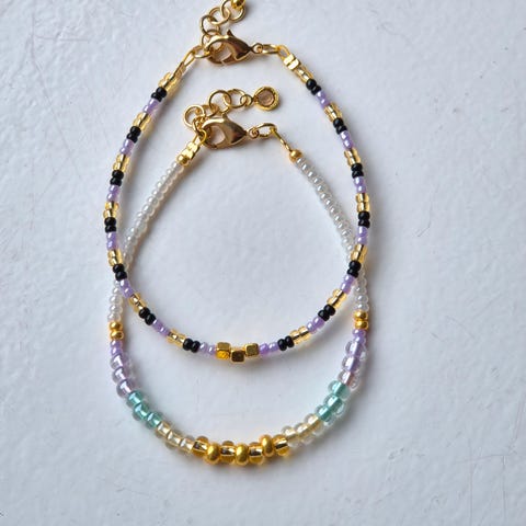 Søkeord: armbånd, rocailles, rocaillesperler, seed beads, glassperler, smykkesett, perler, perlearmbånd
