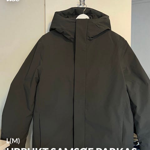 Selger en pent brukt parkas fra Samsøe Samsøe i mørke grønn. Str er medium. Jeg pleier å ligge mellom medium og large og denne passer meg godt.
