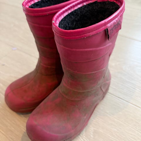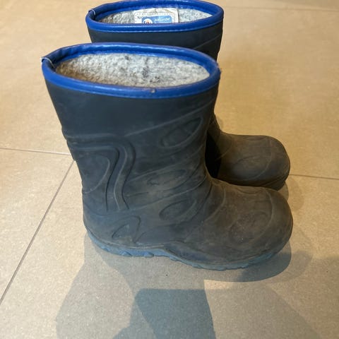 Blå cherrox, perfekt til våte og kalde dager. Pent og lite brukt, men kan ha godt av en vask.