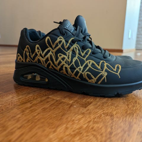 Nye Skechers go run som kun er prøvd inne. Hvite med flotte detaljer som pynter opp. Nypris: 1399