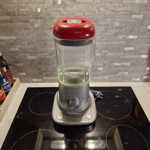 Kenwood 700 W stavmikser med flere tilbehør, inkludert visp, hakker og målebeger. Enheten er designet for matlaging og kan brukes til miksing, visping og hakking.
