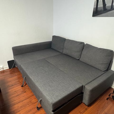 Pent og lite brukt sofa/sovesofa med oppbevaring. 3 pynteputer medfølger, Koster opprinnelig 4000 kr som ny. Må hentes.