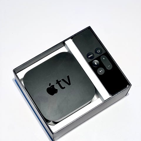 Apple Apple TV er en mediespiller som kobles til TV for å strømme innhold. Enheten leveres med fjernkontroll og strømkabel. Den har et kompakt design og tilkoblingsporter på baksiden for nettverk og HDMI.