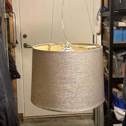 Stor og flott taklampe med 6 glasskuppeler i forskjellig høyde. Glasset er sotet sort