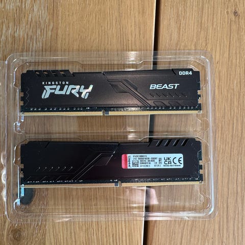 Kingston Fury Beast 32 gb RAM DDR4-minnemoduler. Passer for oppgradering av datamaskinens minnekapasitet.