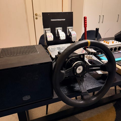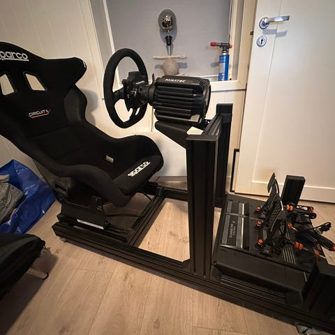 Rå simrigg. selges uten pc og består av Dc-simracing pedaler. Thrustmaster tss shifter. Heusinkveld brekk. Sim-lab rigg, ratt, Omp xl stol. 49" samsung skjerm. Tastatur.