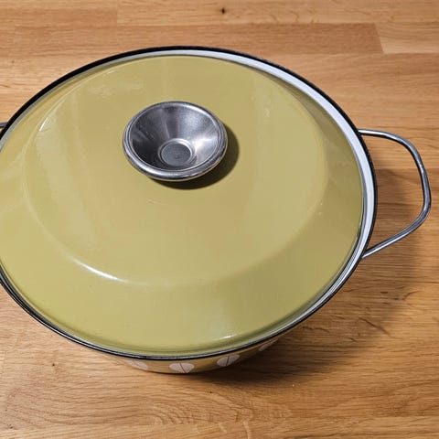 Gryten er 12 cm høy og har en øvre diameter på 27 cm.