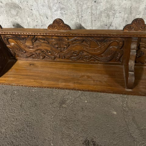 Helt unik hylle laget av materialer fra 1800-tallet selges. Solid håndverk. Den har ikke vært i bruk. Hyllen kan stå på gulvet eller henges på veggen.