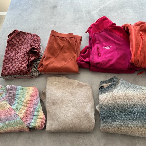 Ulltøyet er pent brukt til 1 barn og vært vasket på ullvask program ☺️ Noe bruksslitasje kan det være, men det er masse bruk igjen og her får du mye klær for pengene!