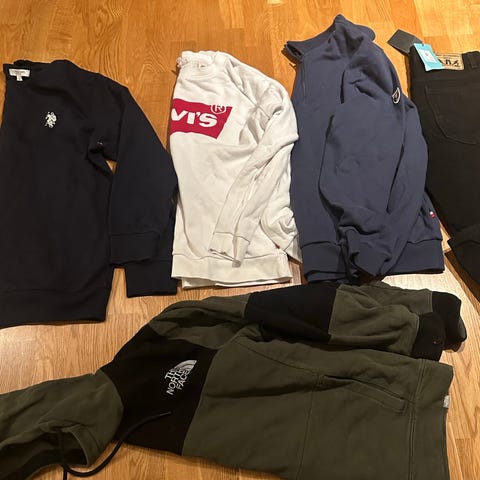 Stor klespakke bestående av 19 plagg. Blant annet en Holzweiler joggedress, Holzweiler shorts, Kenzo genser, t skjorter fra Gant og Jean Paul mm. Noe i str. S og noe i M. Jeg tenker at alt passer noen som pleier å bruke M.