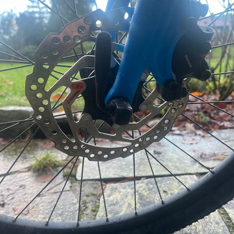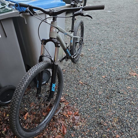 Trek xcaliber terrengsykkel i rød farge. Sykkelen har bredt styre, dempegaffel foran og grove dekk for bedre grep på terreng. Egnet for terrengsykling og allsidig bruk.