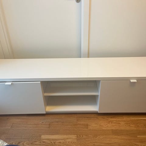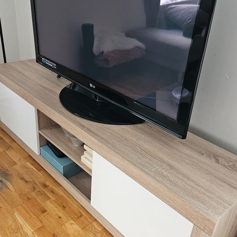 Tv-benk i tre ukjent merke - pent brukt med to skuffer
