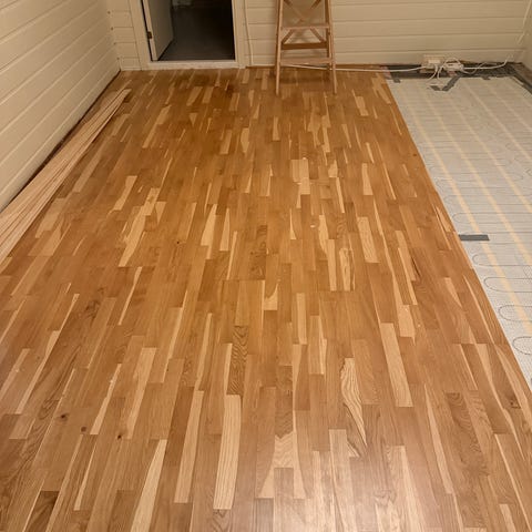 Seks stk laminatgulvplanker som ble til overs gis bort. Pakken er åpnet, men plankene er ubrukt.