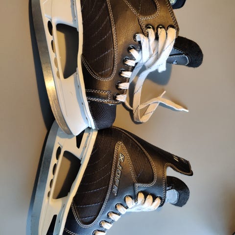 Bauer barneskøyter i størrelse 35, designet for ishockey. Skøytene har svart farge med hvite detaljer og er egnet for barn som spiller ishockey.
