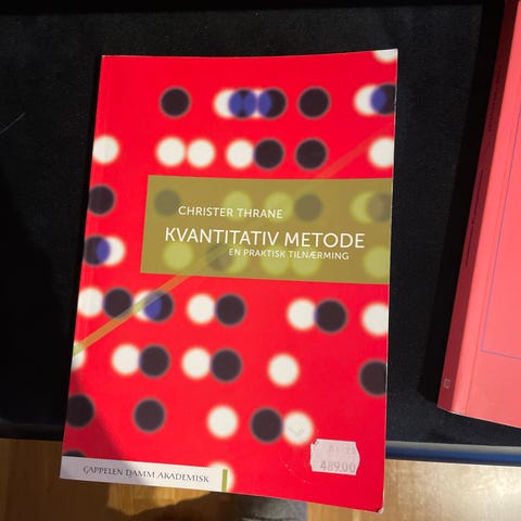 Christer Thrane Kvantitativ Metode lærebok innen matematikk og statistikk. Boken dekker kvantitativ metode med fokus på statistiske analyser og datainnsamling. Inneholder teori og praktiske eksempler relatert til kvantitative forskningsmetoder.