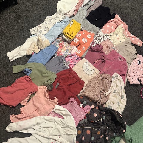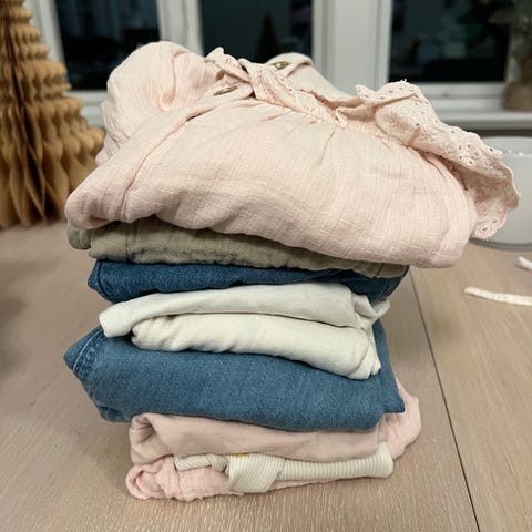 8 bodyer, 9 bukser, 2 gensere, 8 kjoler. Pent brukt.