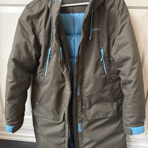 Har en god og varm hette som er avtagbar. To romslige lommer i front og refleks som kan brettes opp på ermene. To glidelåser i siden som kan dras opp for å gjøre den videre nederst.