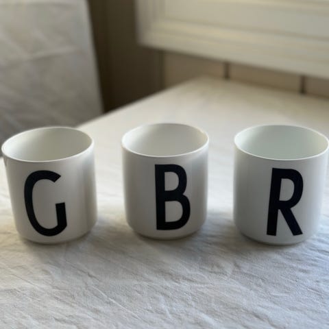Design Letters kopp med bokstav M og R