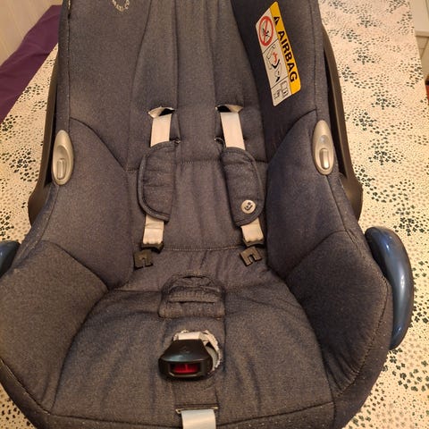 Pent brukt bilsete til baby. Følger med nyfødtinnlegg. Brukt i ca 5 mnd. selvfølgelig inne vært i kollisjon.