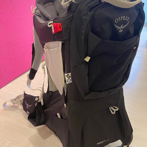 God og solid bæremeis, praktisk med mange lommer, innebygd solskjerming og liten avtagbar sekk.