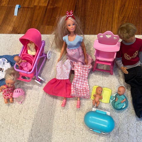 Barbiedukker med barn og div utsyr selges.