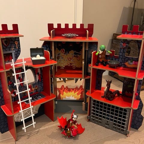 Selger et stort middelalderslott / fantasy-lekesett med mange figurer og tilbehør.